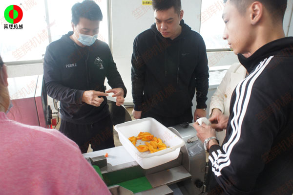 客户现场了解瓜果分瓣及切割设备,最后现场签定合同交付定金!笙辉机械专注于肉类、水产、果蔬类等食品前处理加工机械的研发生产、制造,满足客户各类中*央厨房生产线非标工程定制实施!