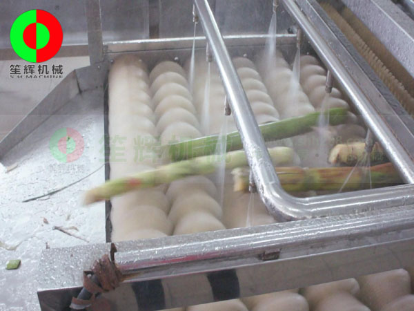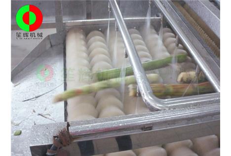 - 产品优势: 甘蔗清洗机适用对各类型甘蔗的清洗,产量大,操作方便!具有以下特点: 1、可根据各种不同甘蔗的大小种类,调节上下层毛刷的间距,设置同时调速和分别调速。 2、可将臭氧发生器产生的臭氧注入水箱中,进行臭氧杀*菌。(附加功能) 3、毛刷上方装有四排高压水流喷射装置,有*效清洗甘蔗表面粘连的泥沙杂质。